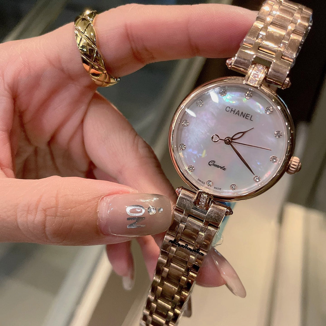 ◆Features a fully imported quartz movement with a mother-of-pearl dial. The bezel and strap are...