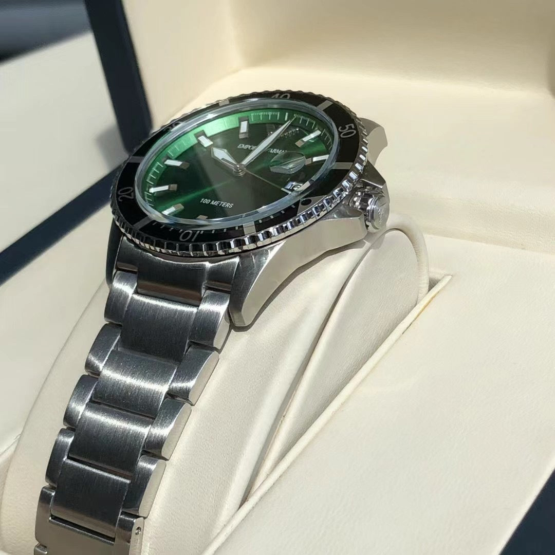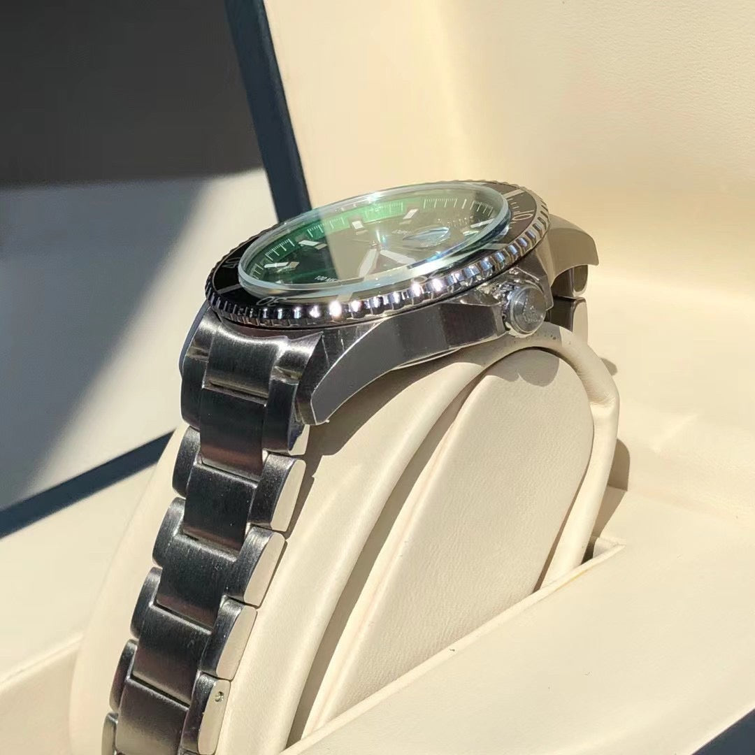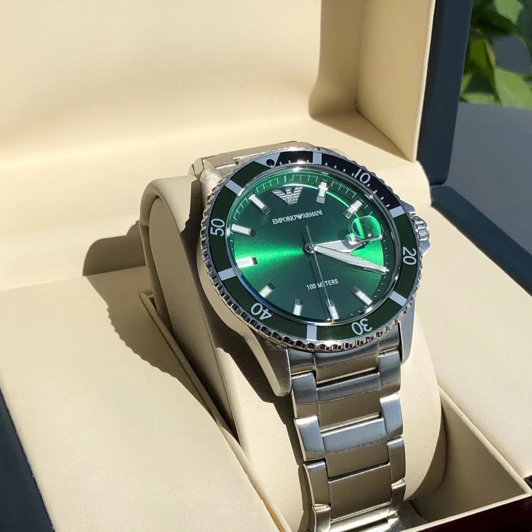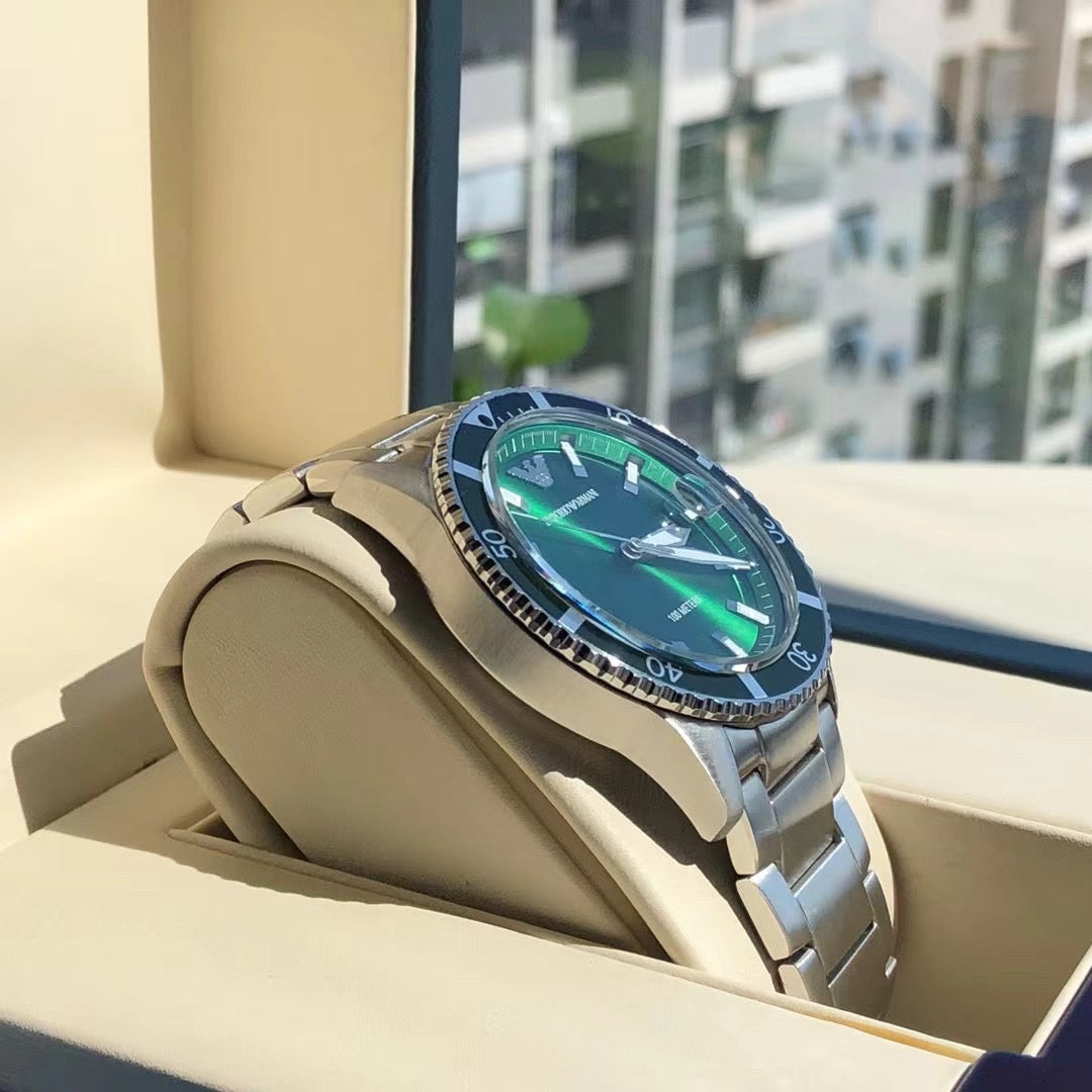 ◆ Business casual European minimalist quartz steel bracelet men's watch. Drawing inspiration from diving, this sporty design features three-hand date display, sunray-brushed bezel, and blue dial. Embodying quality living, it is meticulously crafted with polished finishes that extend the case texture, with every detail showcasing the brand's exceptional quality.