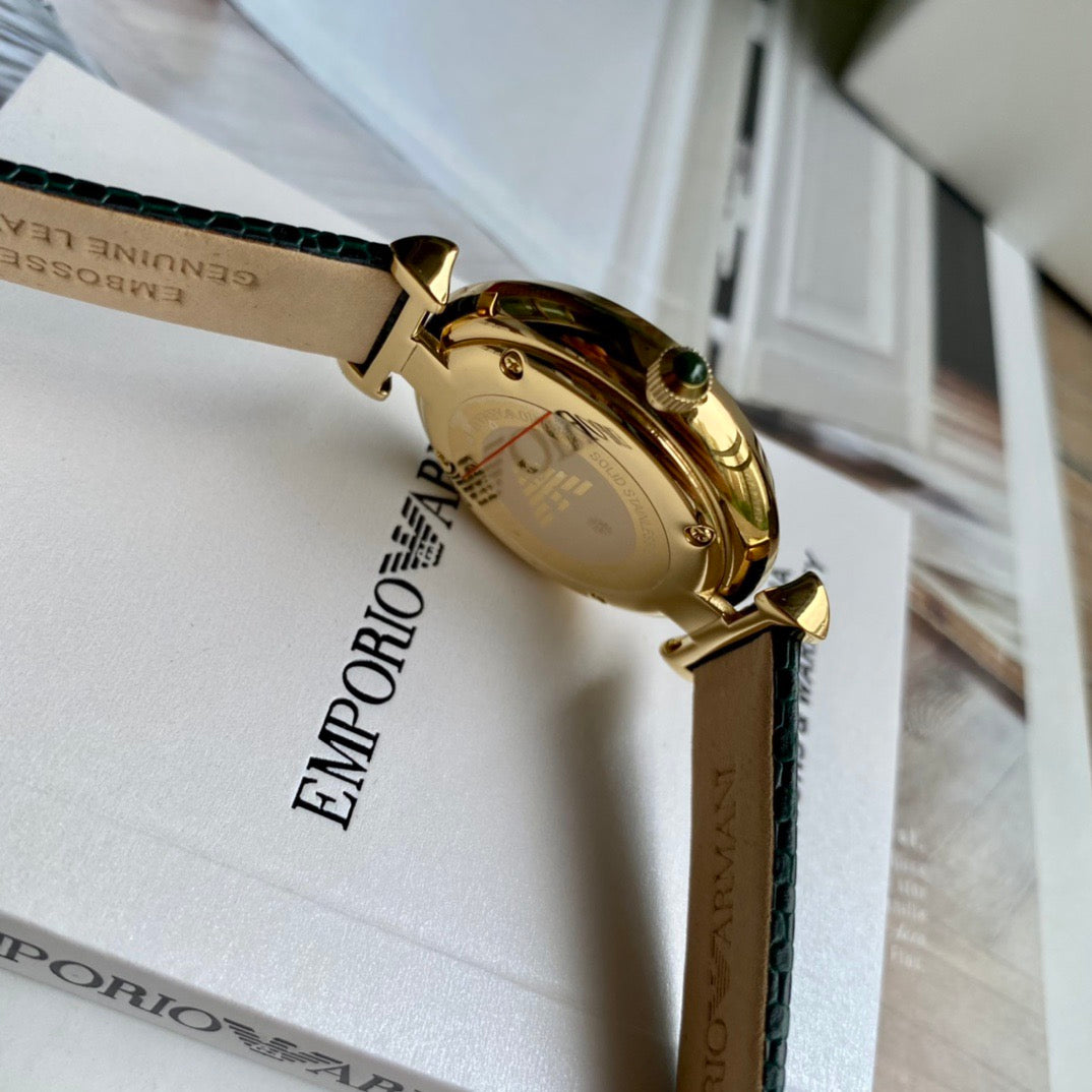 ◆ Versatile green beauty, starry sky dial radiates extraordinary brilliance. Features a dual-hand design paired with a calfskin leather strap. Delicate grain patterns enhance its elegant and fashionable appeal. 32mm case size.