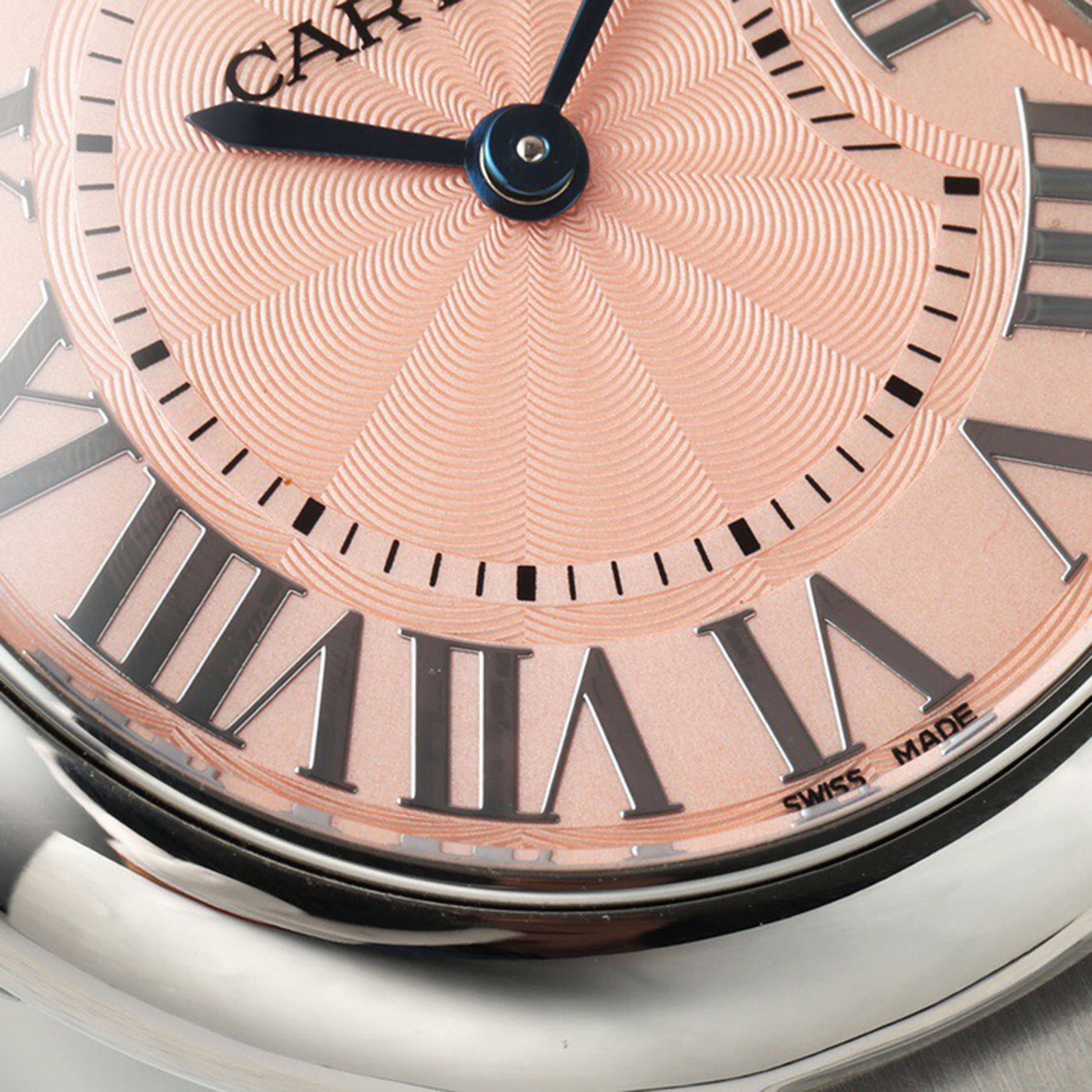 ◆【Dial】Circular balloon-inspired dial design, guilloché patterned dial, sword-shaped hands, an irresistibly classic dial. Roman numeral hour markers deviate from the path under the guidance of the deep, mysterious blue crown. Swiss-made blued steel hands and genuine topaz crown.