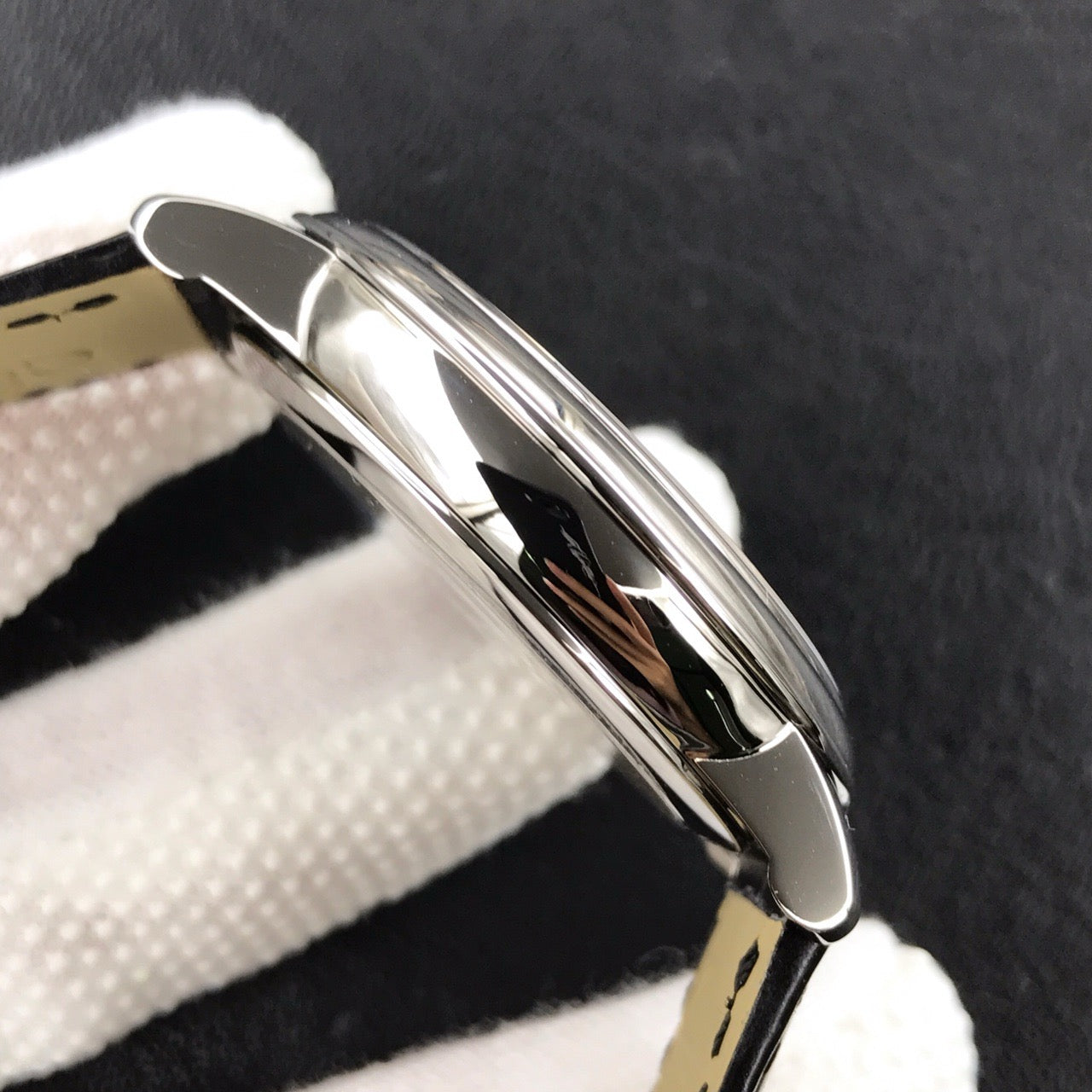 ◆【Case】Crafted from 316L stainless steel with an elegantly refined case profile. The caseback features an embossed design replicating the original's synchronized track pattern.