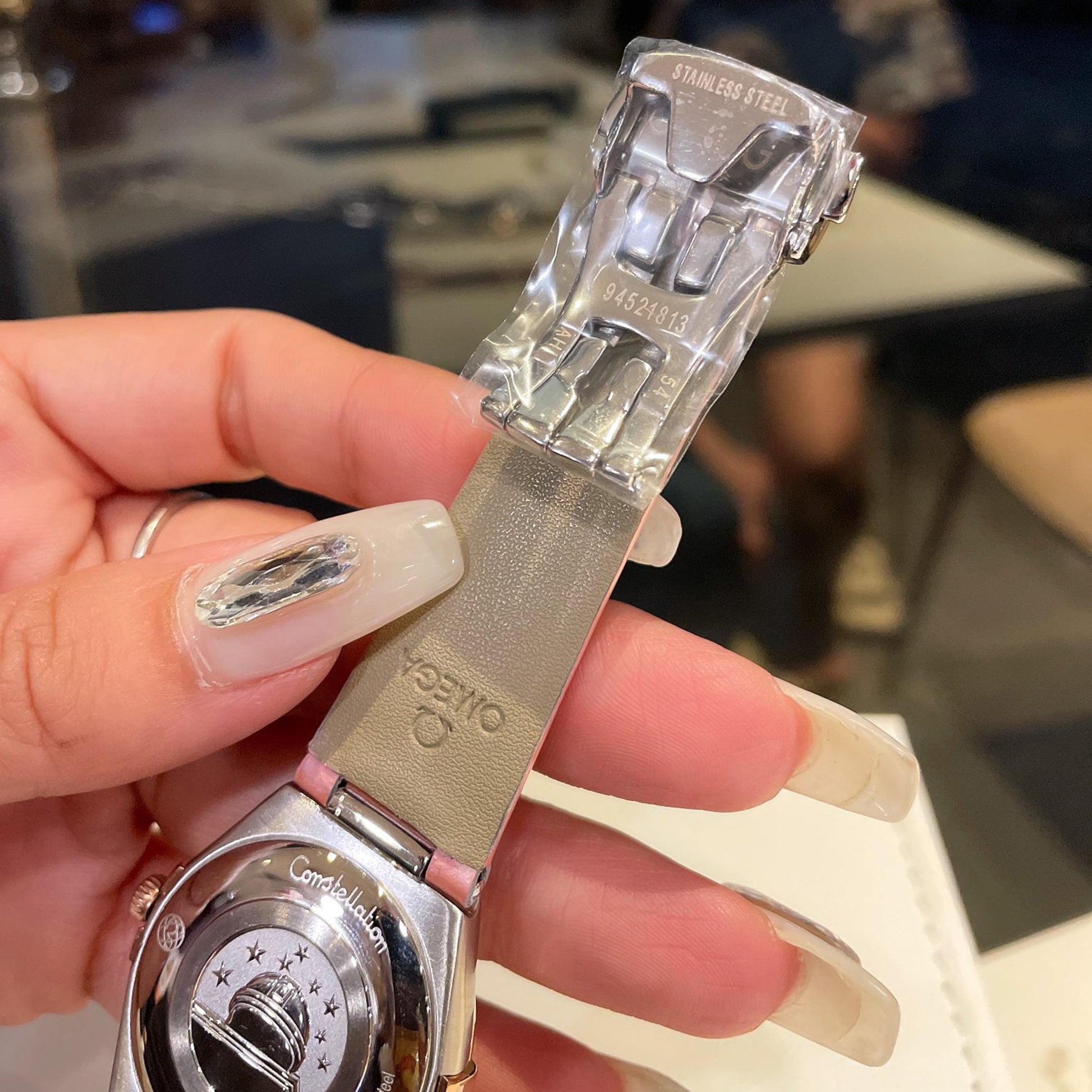 ◆ The dial is meticulously crafted from mother-of-pearl, featuring 11 diamond hour markers that sparkle brilliantly. Every turn of the wrist radiates elegance, showcasing its luxurious essence.