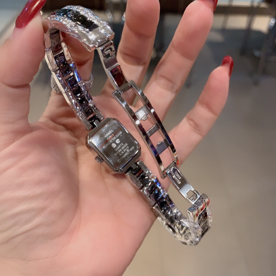 ◆ High-tech ceramic bracelet complements the slightly square case, showcasing pure elegance through minimalist design